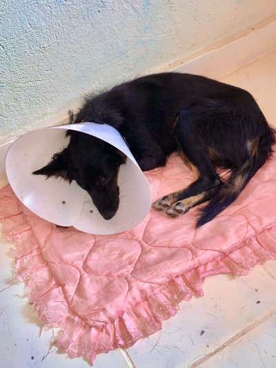 A Adelaide quebrou a patinha já fazem uns 10 dias. Estamos cuidando como podemos, medicando e curando o ferimento. Mas ela precisará de cirurgia, se não será caso de amputação, mas não temos condições de pagar por ela no momento.